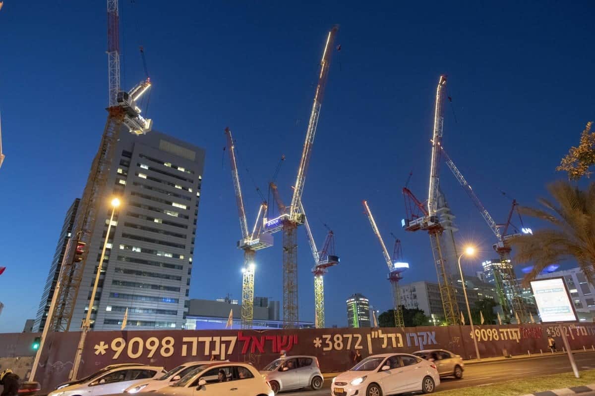 בשל אילוצי מקום, זמן, תקציב ובטיחות הוחלט יחד עם הקבלן "עומר הנדסה" לבנות את המגדל באמצעות 3 עגורני לאפינג (Luffing Tower cranes) של YONGMAO מדגם STL 230 , מתוכם 2 יטפסו ע"ג המעטפת החיצונית של הבניין ללא בסיס המחובר לקרקע. טכנולוגיה חדישה בעולם להגבהת עגורנים המופעלת בישראל ע"י סקייליין.