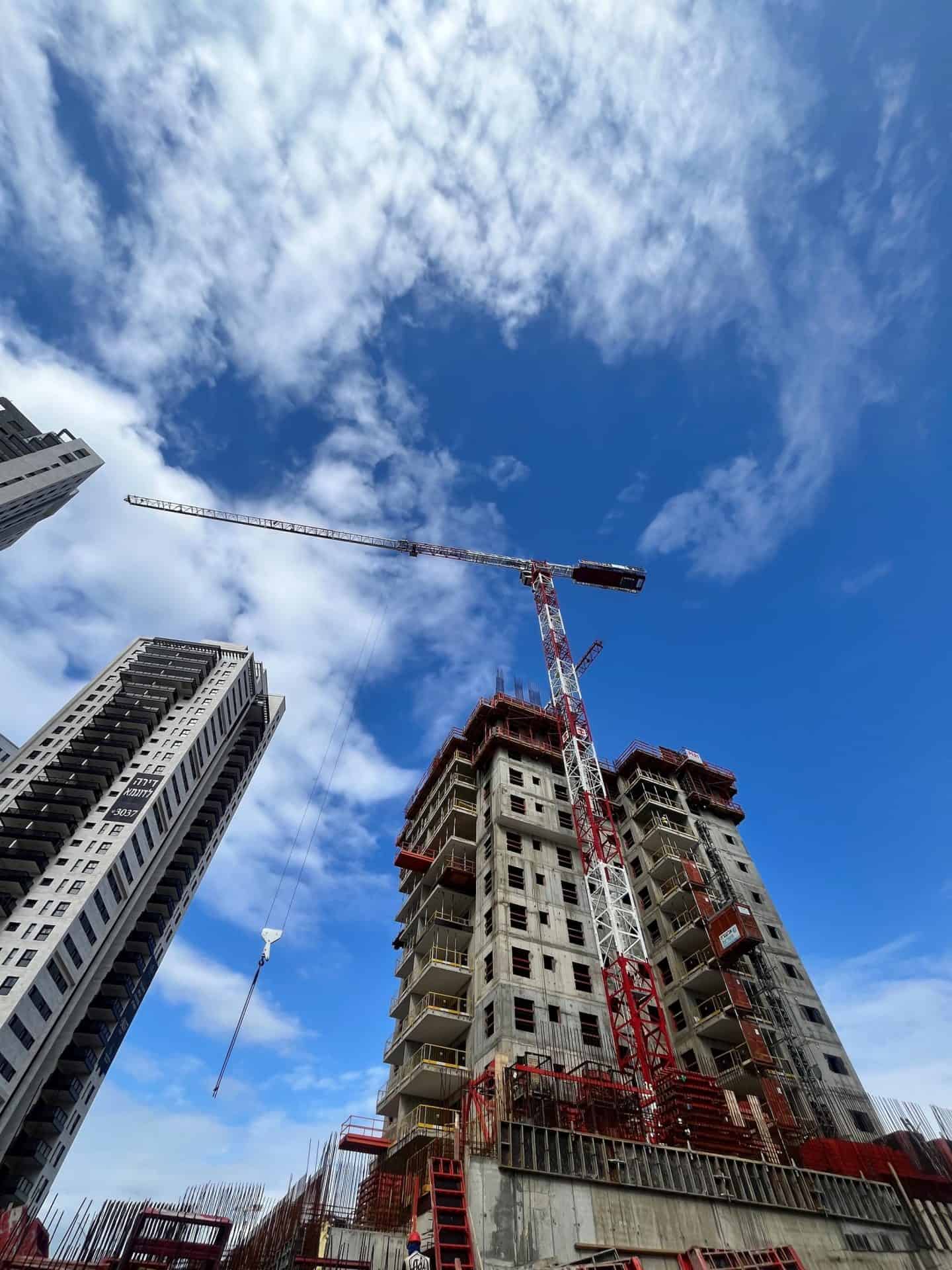 פרויקט אקווה סנס כולל שני מגדלי מגורים בני 22 קומות ובהם 115 יחידות דיור. בבניית המגדלים משתתפים ארבעה עגורני טופלס מדגם Yongmao STT200 ועגורן לאפינג Yongmao STL230.