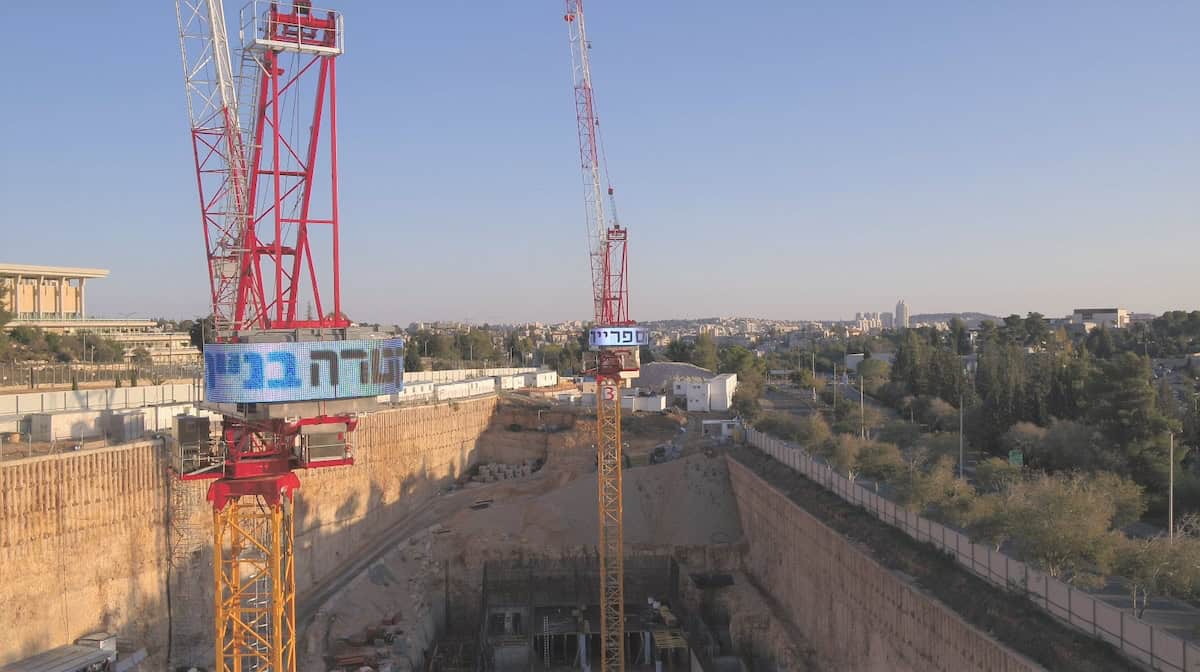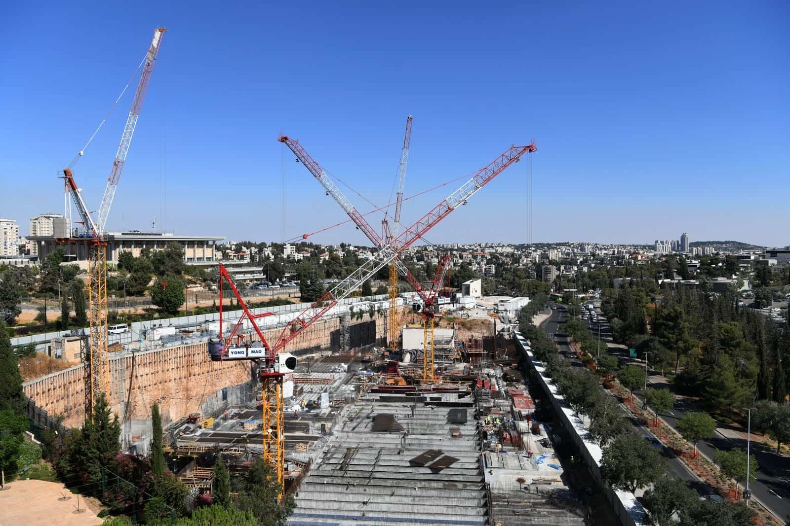 מבנה הספרייה הלאומית נבנה מול בניין הכנסת בירושלים על ידי חברת אלקטרה בניה. הפרויקט בוצע בשיתוף חברת סקייליין אשר הייתה אחראית על תכנון והצבת עגורני צריח ותכנון ושימוש בעגורני לאפינג. חברת סקייליין תכננה את הצבת עגורני הלאפינג מדגם Yongmao STL230 בהתאם לתנאי השטח והסביבה האורבנית.