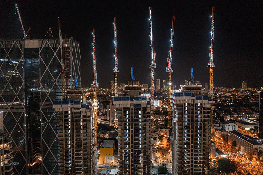 במתחם שרונה בתל אביב, בין רחוב קפלן לרחוב דה וינצ'י נבנו שלושה מגדלי יוקרה בני 35 קומות ובהם 387 יחידות דיור ומרכז מסחרי הכולל חנויות ומרכזי פנאי ובילוי. הפרויקט נבנה באמצעות תשעה עגורני לאפינג המותאמים לבניה אורבנית צפופה.